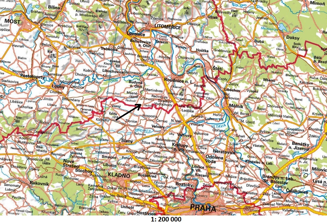 severozápadně od Kralup nad Vltavou. Nachází se na hranicích Ústeckého a Středočeského kraje. Region, ve kterém se Radešín