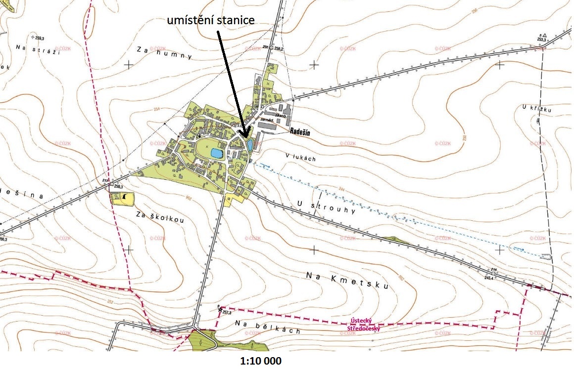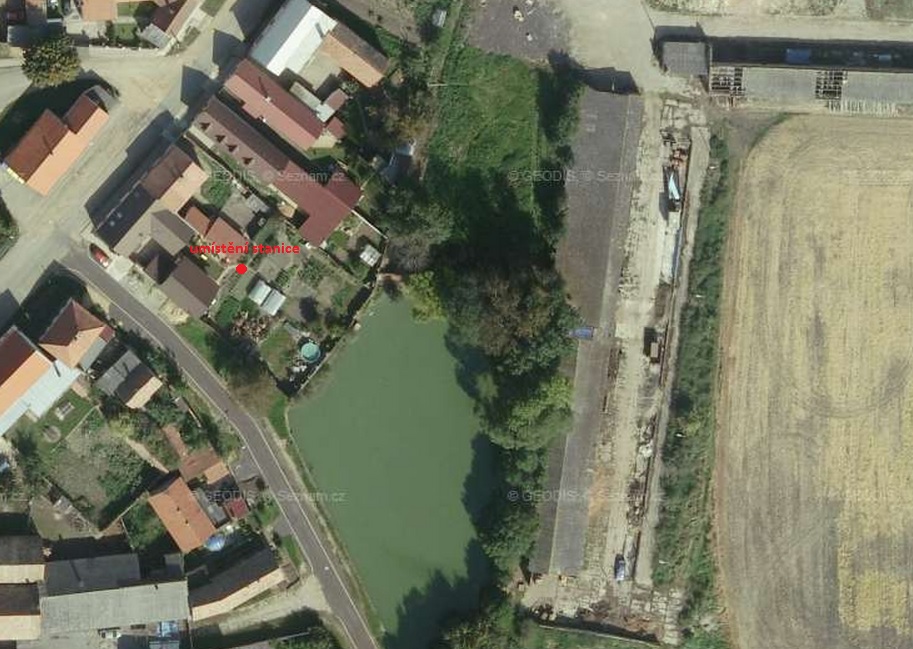Meteostanice je umístěna na zahradě rodinného domu. Od okraje obce ji dělí pouze rybník, takže okolní krajina je otevřená. Měření teploty probíhá ve 2 m nad zemí a měření větru aneometrem je ve výšce 6 m.