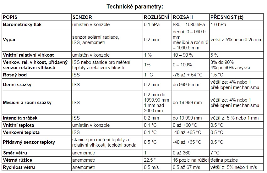 přesností měřených dat. Výhodou této meteostanice je i to, že kromě základních čidel měření teploty, větru a srážek ji lze
